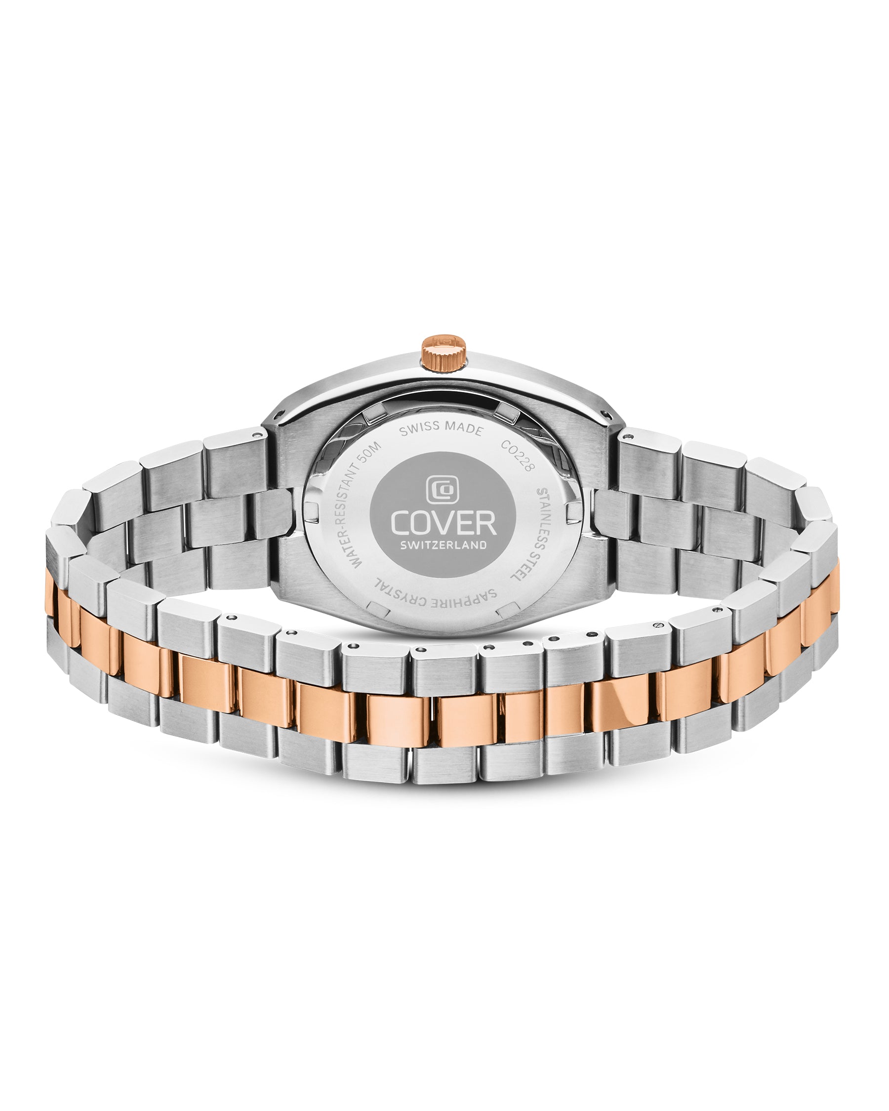 De plus, cette montre suisse à facettes pour femme allie grâce, précision et confort. Son design, avec lunette sertie de diamants, met en valeur l'harmonie entre la clarté de l'argent et la chaleur du rose. Enfin, la montre COVER Urban Muse à facettes en or rose bicolore célèbre la beauté suisse : force, élégance et féminité naturelle.