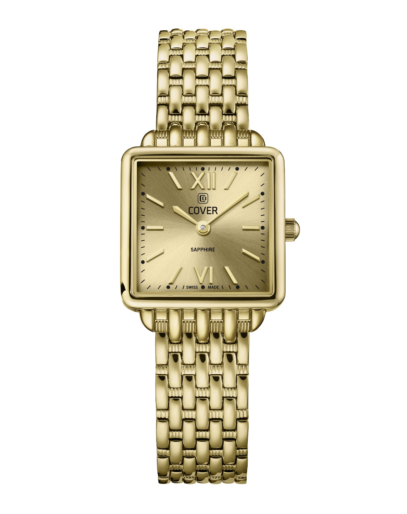 The COVER Lovis Square Watch embodies timeless Swiss sophistication in an all‑gold design. Its sunray dial, case, and bracelet shine in perfect harmony, creating a warm and luxurious appearance. Because of its clean geometry and monochrome tone, it feels both modern and classic – a confident statement of refined style.